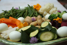Eplucher les carottes et les navets, puis détailler les brocolis et/ou le chou-fleur en bouquets. Equeuter les haricots verts. Faire bouillir tous les légumes séparément dans de l’eau salée. Il est aussi possible de les cuire à la vapeur. Faire bouillir les œufs jusqu'à ce qu'ils soient durs et les écaler.