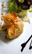 Passer au four préchauffé à 160° pendant 5 minutes, jusqu’à ce que les feuilles de brique soient bien dorées. Servir avec une salade mesclun.